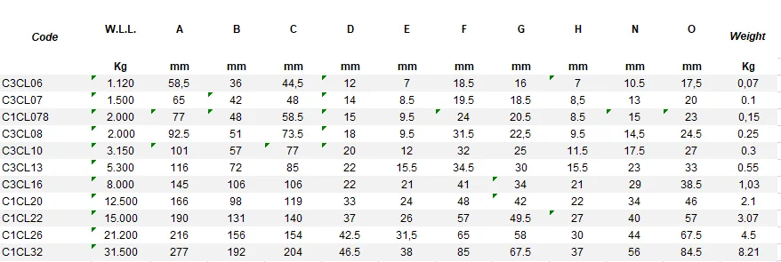 Το φορτίο ανύψωσης δεν πρέπει να ξεπερνά το ασφαλές φορτίο λειτουργίας του εξαρτήματος, όπως υποδεικνύεται από τον πίνακα δυνατοτήτων.